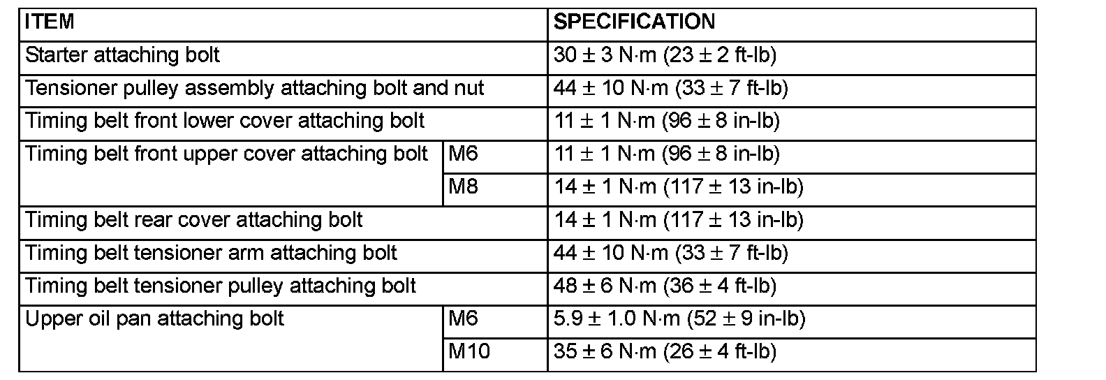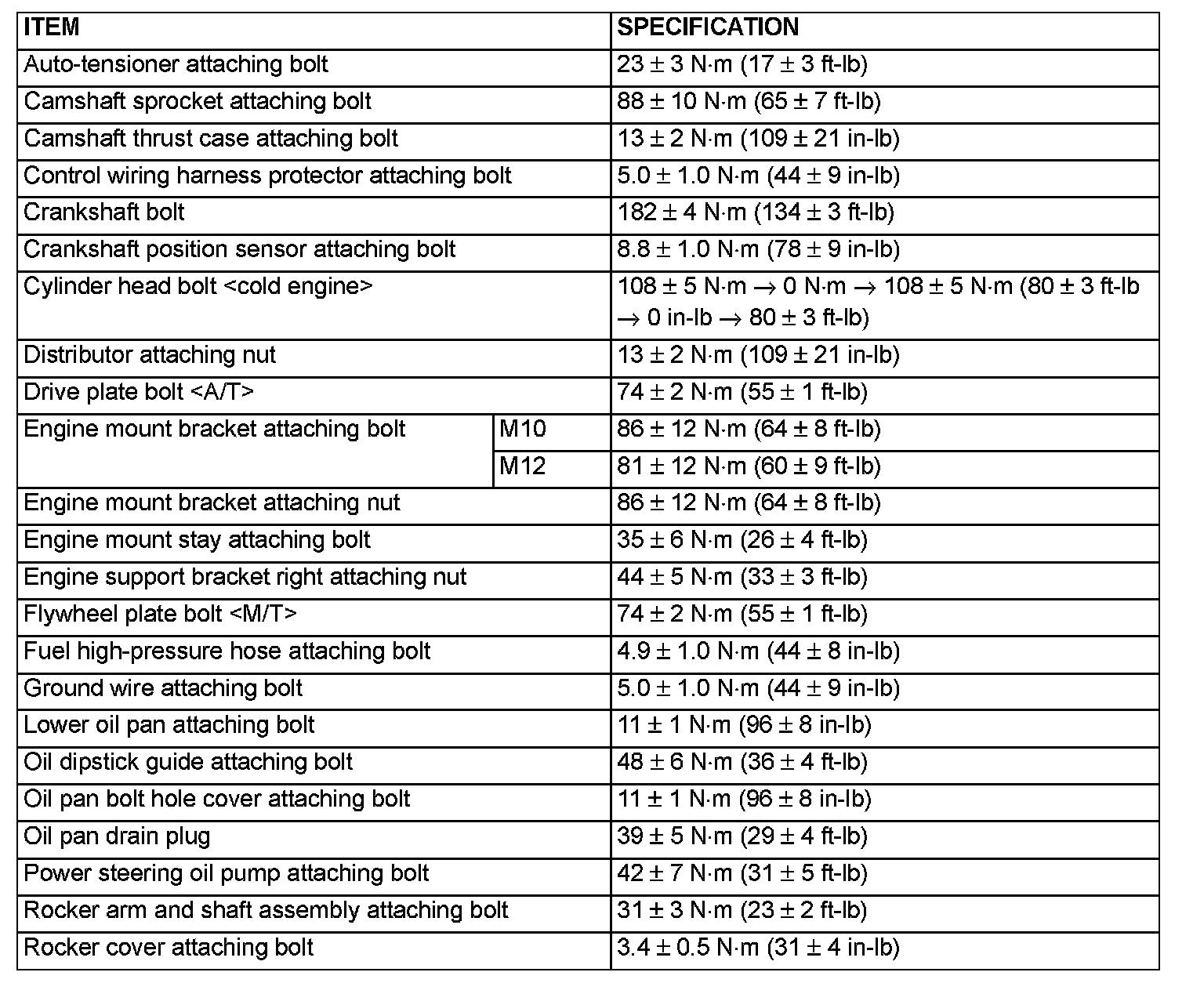 Fastener Tightening Specifications