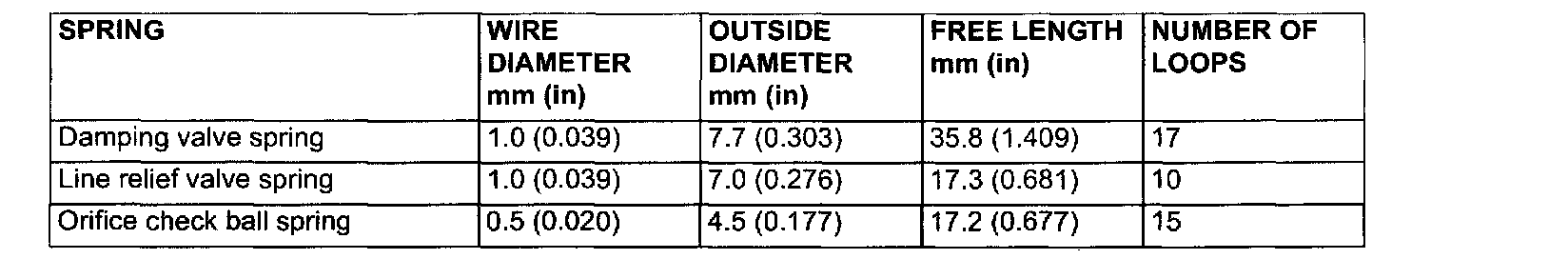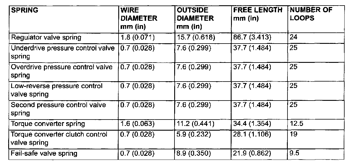 VALVE BODY SPRING IDENTIFICATION TABLE