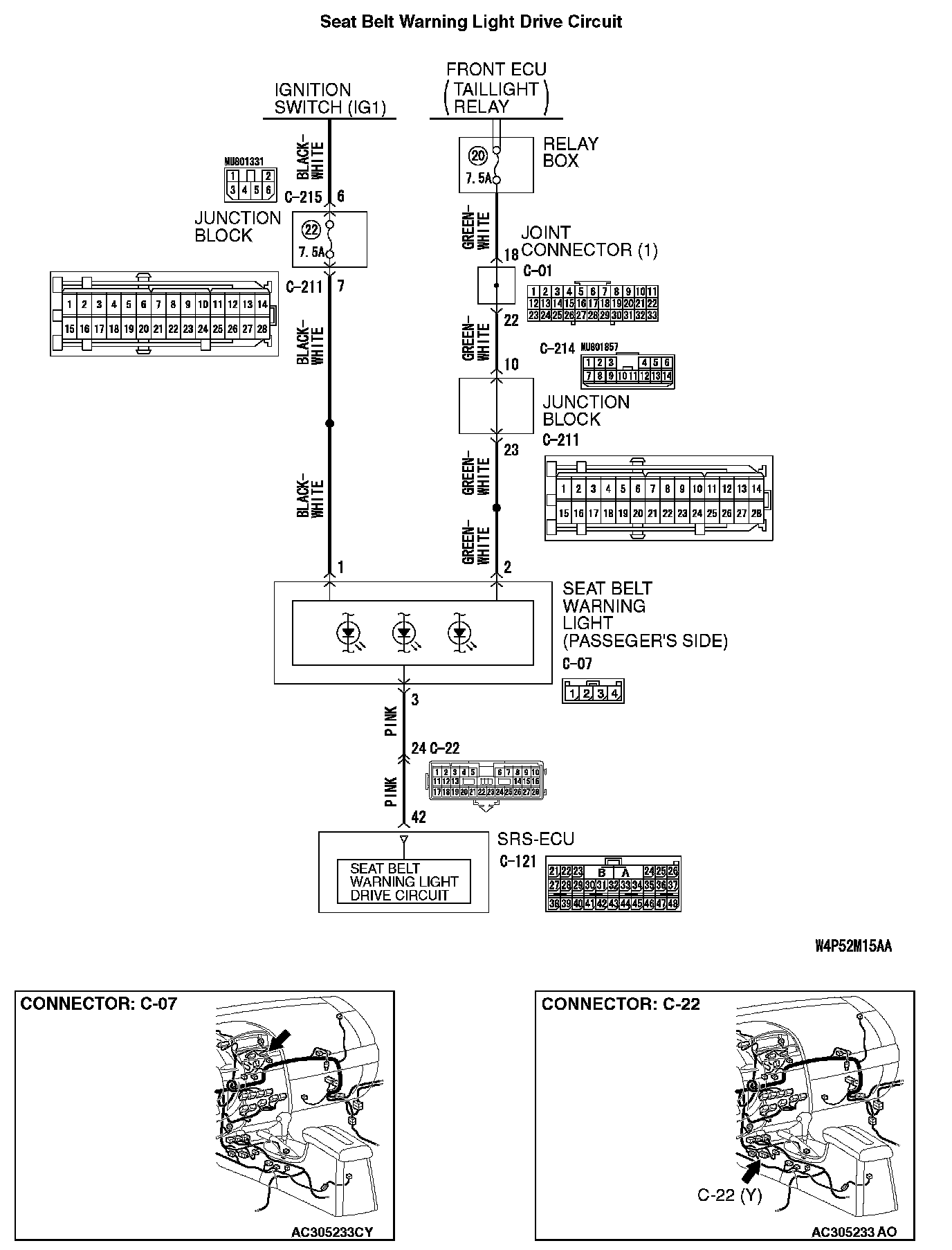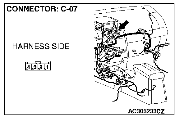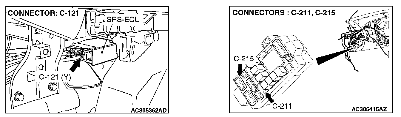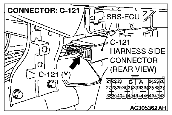 STEP 5. Check the harness between SRS-ECU connector C-121 (terminal No.42) and passenger's seat belt warning light C-07 (terminal No.3).