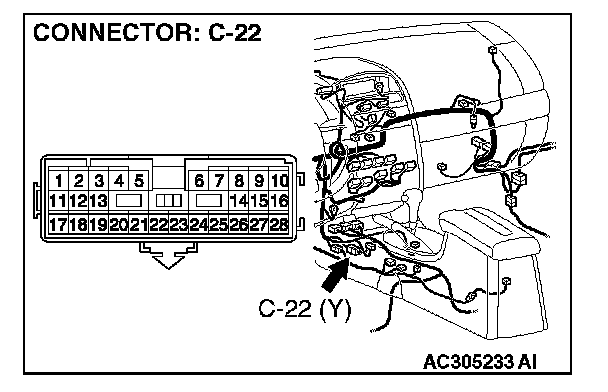 NOTE: After inspecting intermediate connector C-22 inspect the wiring harness. If intermediate connector C-22 is damaged, repair or replace them. Refer to Harness Connector Inspection. Then go to Step 6.
