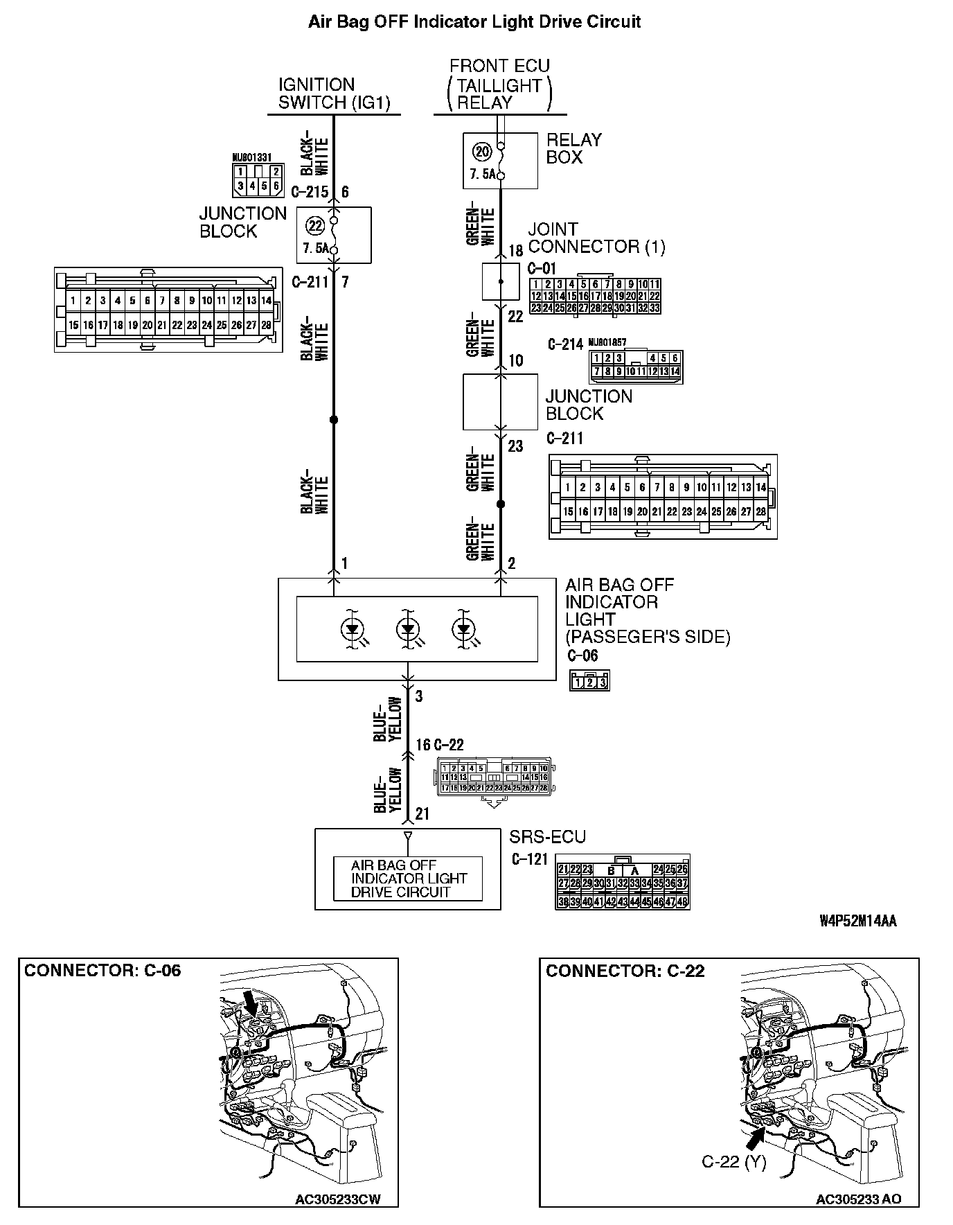 - Power for the passenger's air bag OFF indicator light is supplied from the ignition switch (IG1).