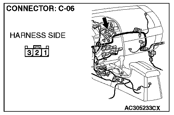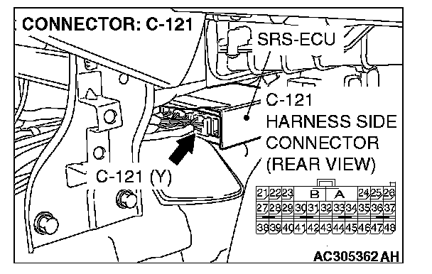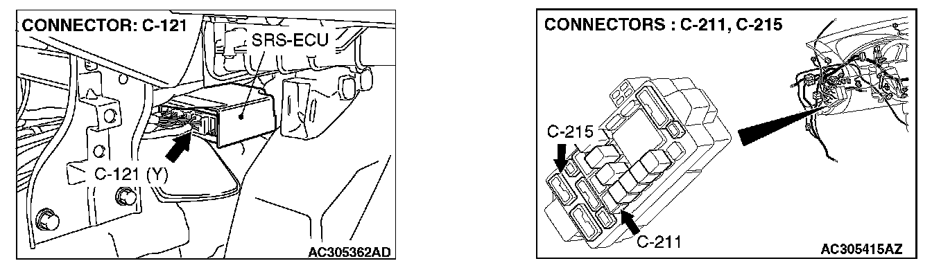 STEP 5. Check the harness between SRS-ECU connector C-121 (terminal No.21) and passenger's air bag OFF indicator light C-06 (terminal No.3).