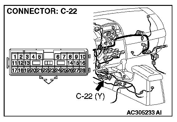 NOTE: After inspecting intermediate connector C-22 inspect the wiring harness. If intermediate connector C-22 is damaged, repair or replace them. Refer to Harness Connector Inspection. Then go to Step 6.