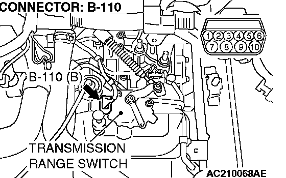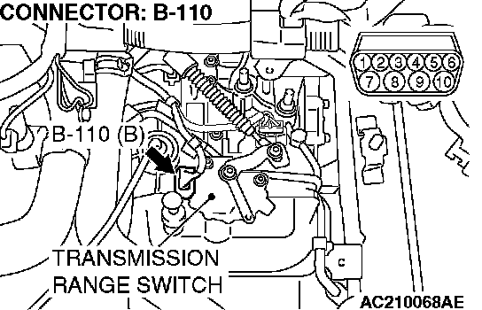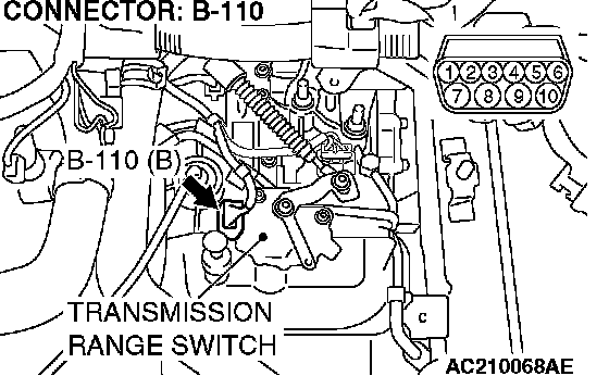 STEP 7. Check transmission range switch connector B-110 for loose, corroded or damaged terminals, or terminals pushed back in the connector.
