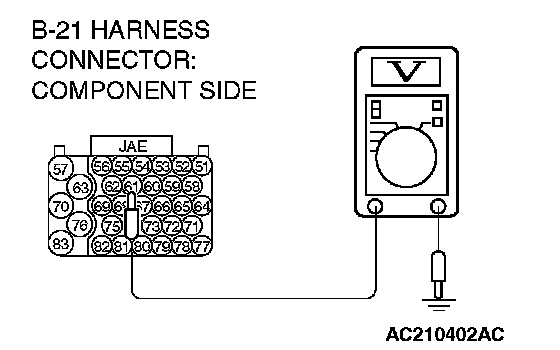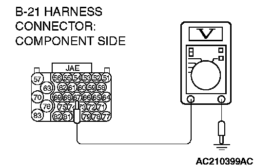 STEP 8. Measure the transmission range switch output voltage at PCM connector B-21 by using check harness special tool MB991923.