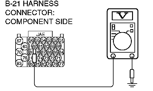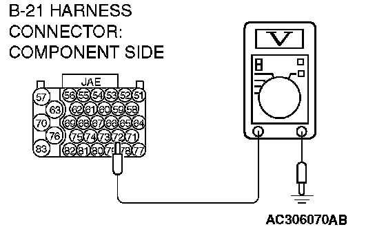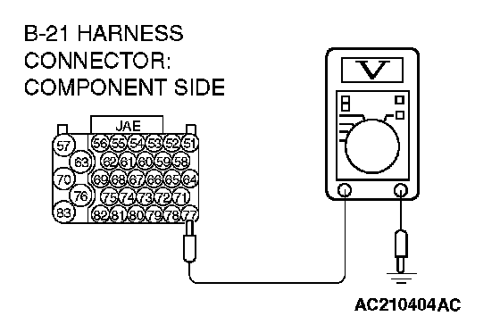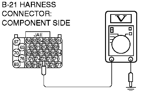 STEP 19. Measure the transmission range switch output voltage at PCM connector B-21 by using check harness special tool MB991923.