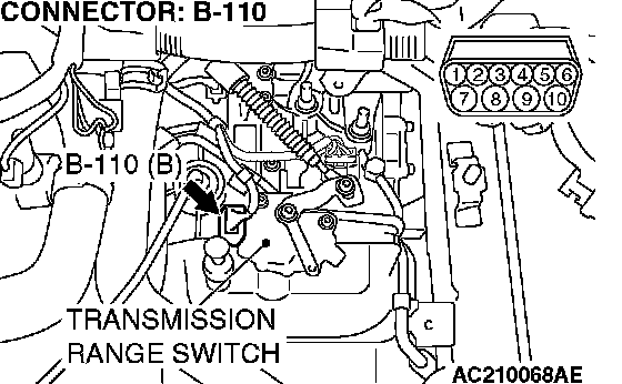STEP 30. Check transmission range switch connector B-110 for loose, corroded or damaged terminals, or terminals pushed back in the connector.