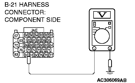 STEP 31. Measure the transmission range switch output voltage at PCM connector B-21 by using check harness special tool MB991923.