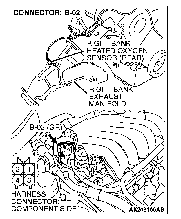 STEP 2. Check the cylinder 1, 4 heated oxygen sensor (rear).