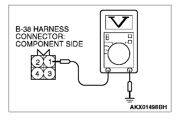 STEP 3. Measure the power supply voltage at cylinder 1, 4 heated oxygen sensor (rear) harness side connector B-38.