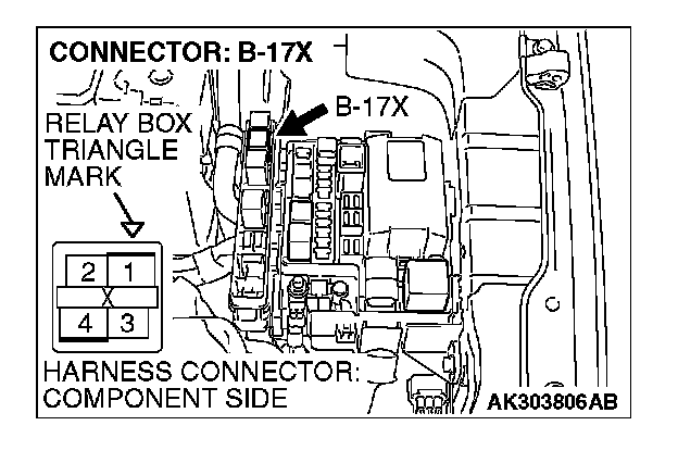 STEP 4. Check harness connector B-17X at the MFI relay for damage.
