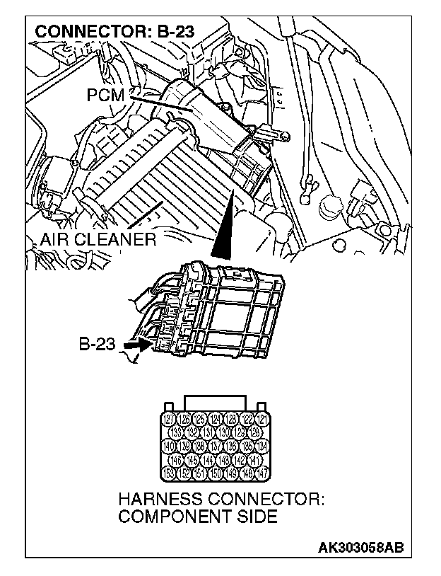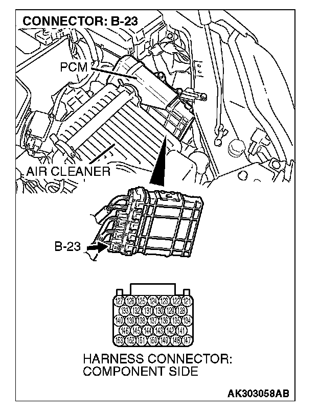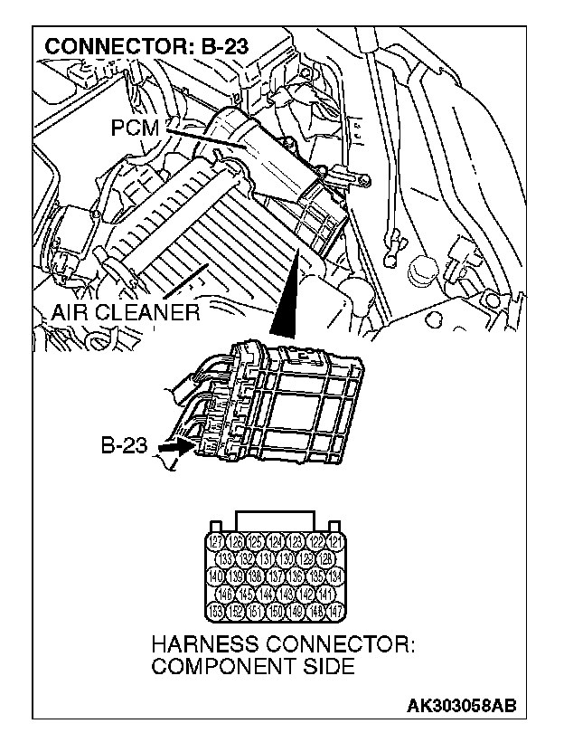 STEP 6. Check harness connector B-23 at PCM for damage.