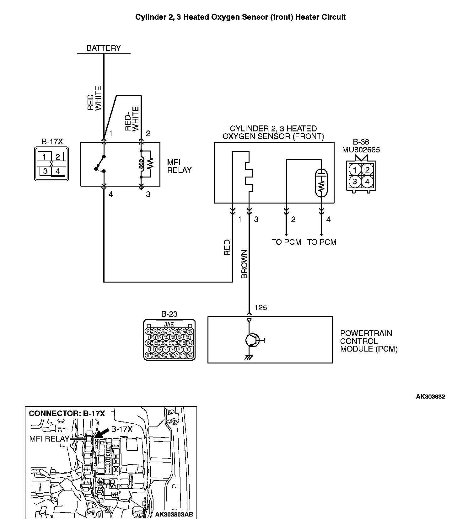 - Power is supplied from the MFI relay (terminal No. 4) to the cylinder 2, 3 heated oxygen sensor (front) heater.