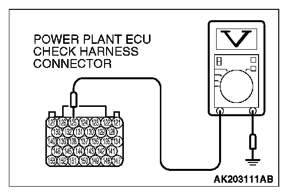 STEP 5. Measure the power supply voltage at PCM connector B-23 by using power plant ECU check harness special tool MB991923.