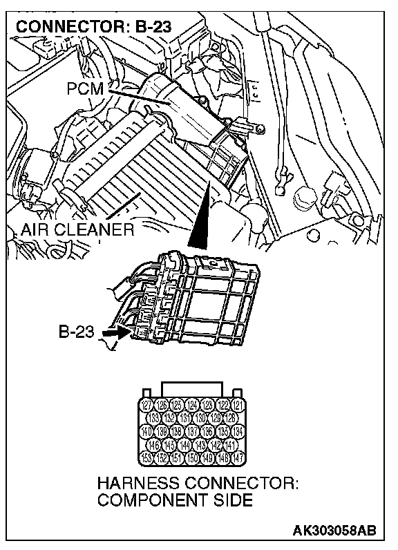 STEP 6. Check harness connector B-23 at PCM for damage.