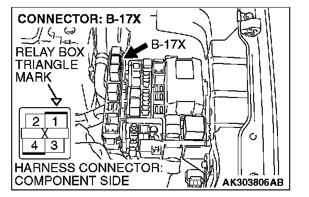 STEP 4. Check harness connector B-17X at the MFI relay for damage.