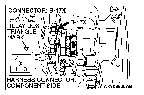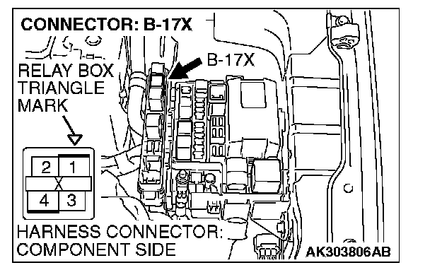STEP 4. Check harness connector B-17X at the MFI relay for damage.