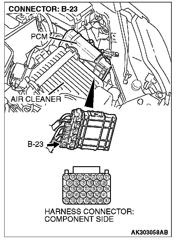 STEP 6. Check harness connector B-23 at PCM for damage.