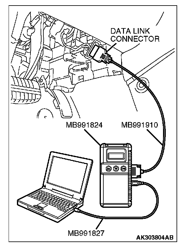 1. Connect scan tool MB991958 to the data link connector.