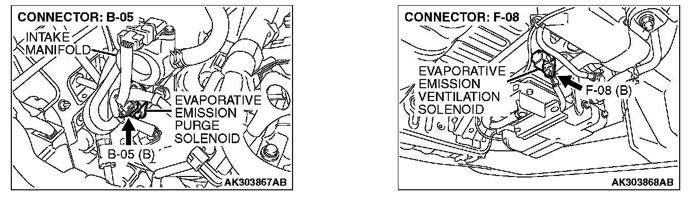 STEP 3. Using scan tool MB991958, check actuator test item 08: Evaporative Emission Purge Solenoid.