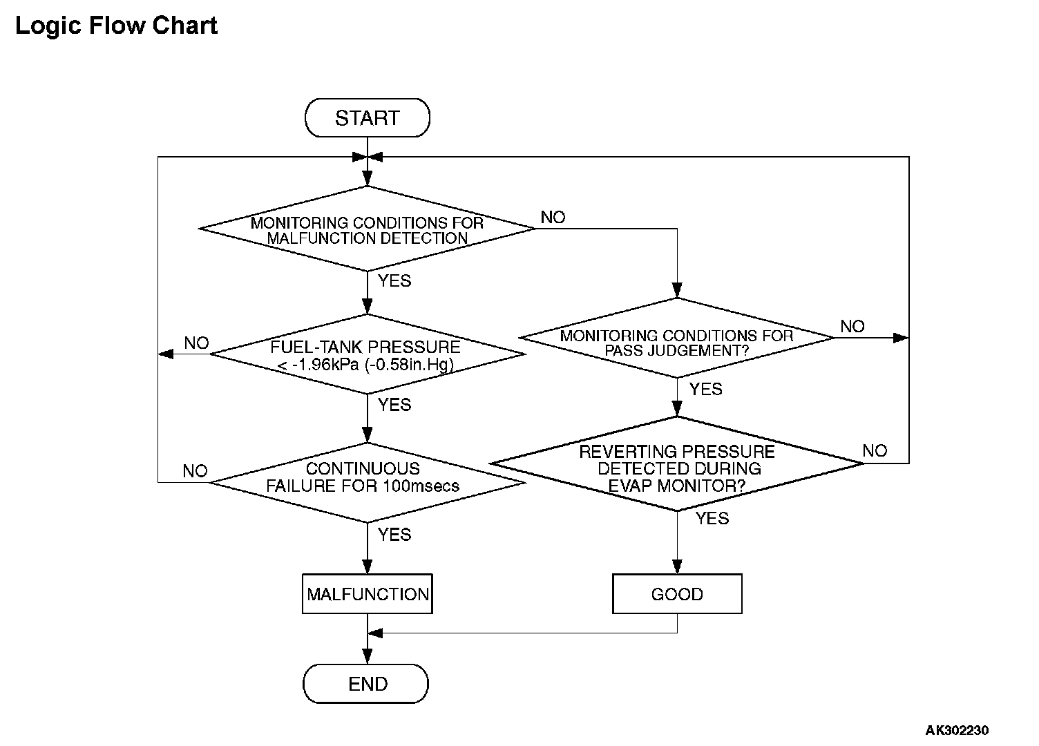 - The pressure in the fuel tank is -1.96 kPa (-0.58 in.Hg) or less for 0.1 second.