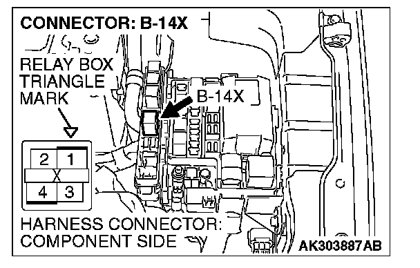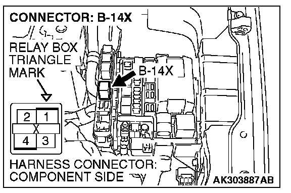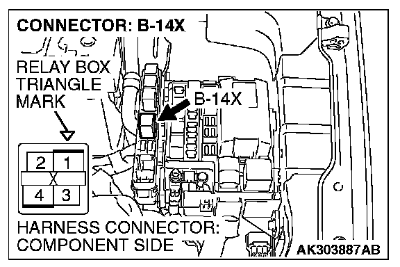 STEP 1. Check harness connector B-14X at throttle actuator control motor relay for damage.