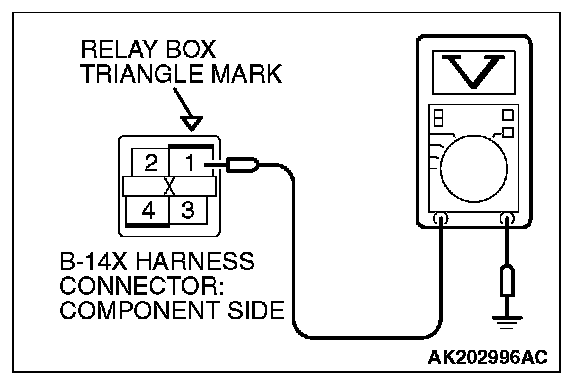 STEP 4. Measure the power supply voltage at throttle actuator control motor relay harness side connector B-14X.