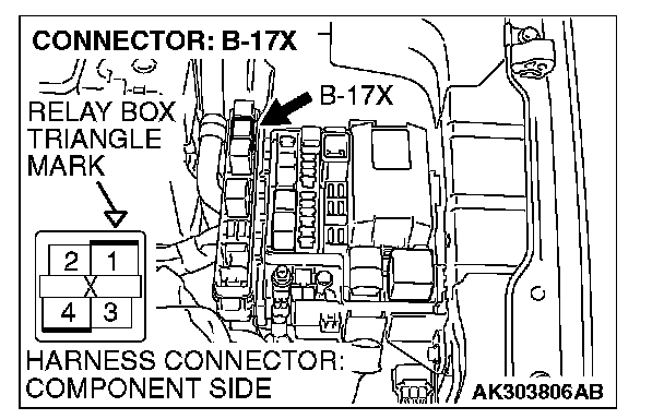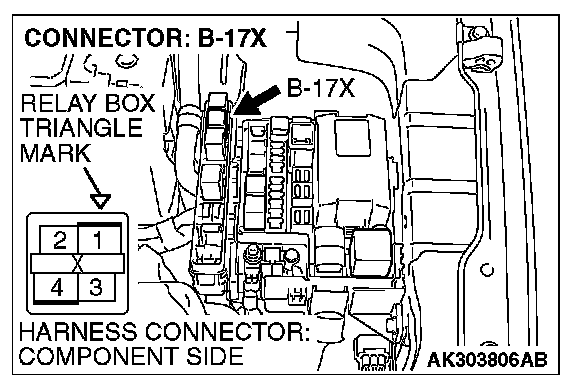 STEP 5. Check harness connector B-17X at MFI relay for damage.