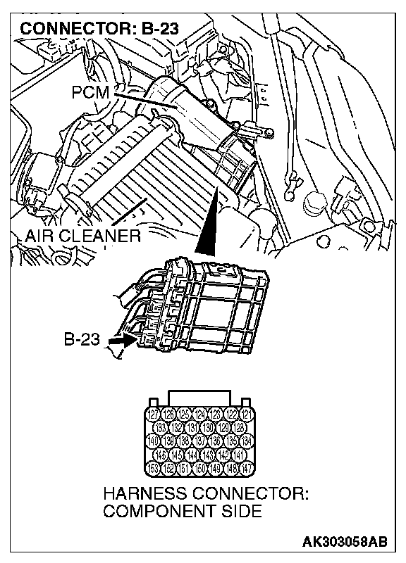 STEP 7. Measure the power supply voltage at PCM harness side connector B-23.