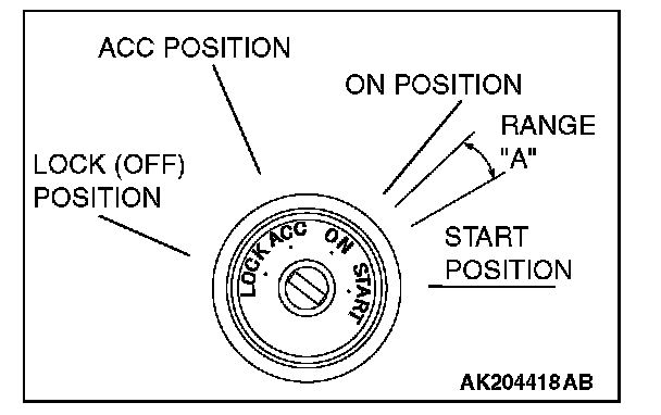 CAUTION: When the ignition key is maintained within the range "A" (i.e., the ignition switch IG2 is in OFF position but the cranking does not start) for more than 1 second, PCM stores DTC U1102 (the past trouble).