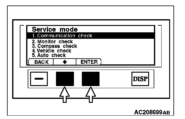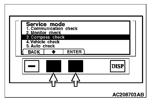 1. Choose "Compass check" from the service mode start-up screen by pressing function button switch 2, and then execute a check by pressing function button switch 3.