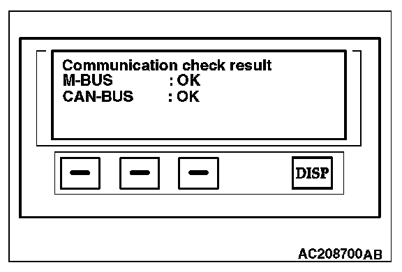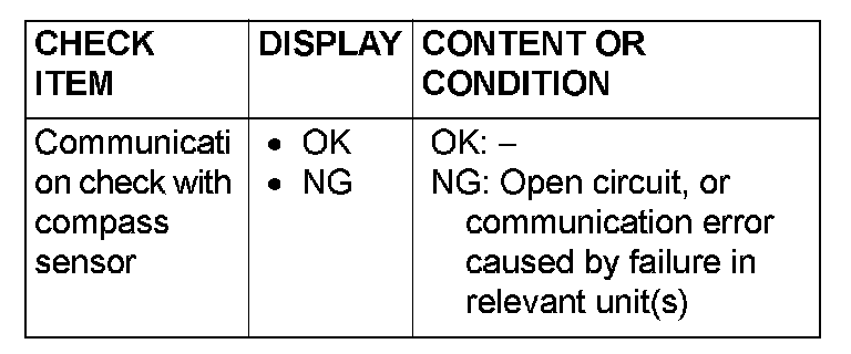 5. The multi-center display unit checks the communication condition, and then shows the check results of "Communication check", "Monitor check", "Compass check", and "Vehicle check". Then the multi-center display ceases CAN communication in approximately seven seconds.