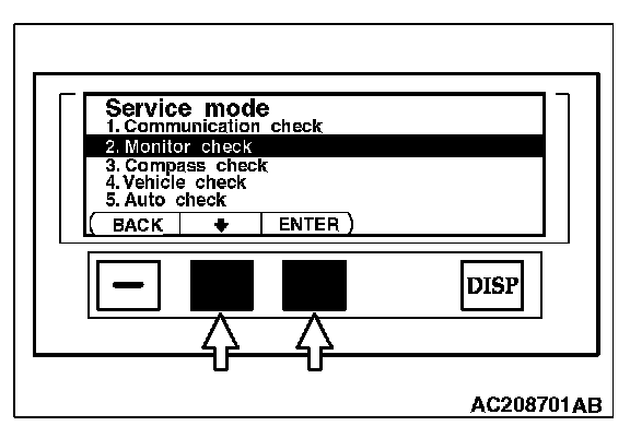 1. Choose "Monitor check" from the service mode start-up screen by pressing function button switch 2, and then execute "ENTER" by pressing function button switch 3.