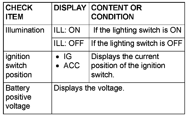 2. The multi-center display performs check and displays the check result. Operate the lighting switch or the ignition switch. Check whether the multi-center display screen corresponds to that operation.