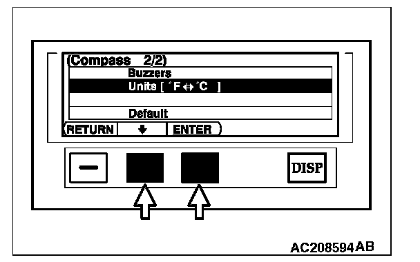 2. Ensure that "Outside temperature unit" is chosen from the "Customization units" screen, and then press function button switch 3 (ENTER).