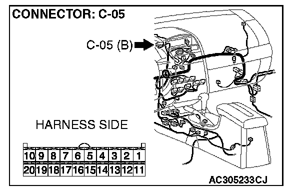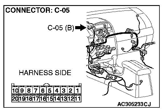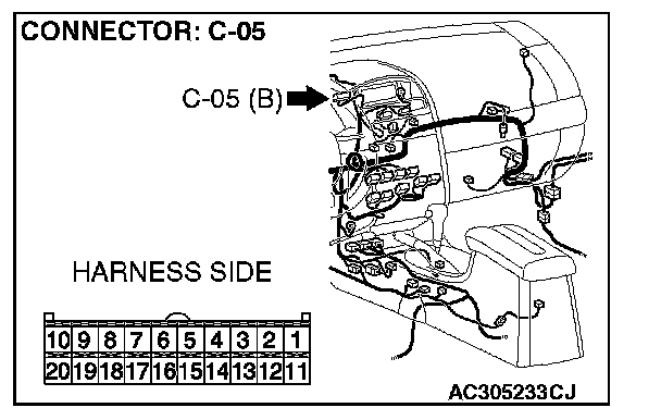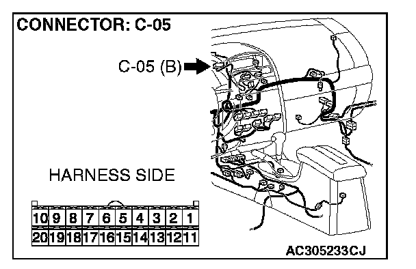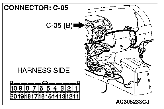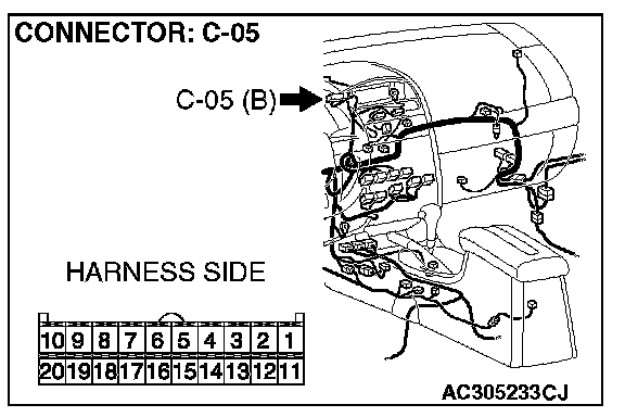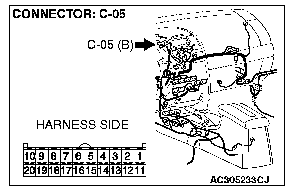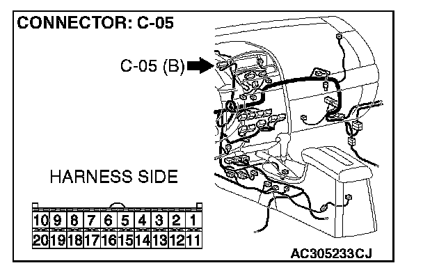 STEP 11. Check the multi-center display unit (middle grade type) connector C-05 for loose, corroded or damaged terminals, or terminals pushed back in the connector.