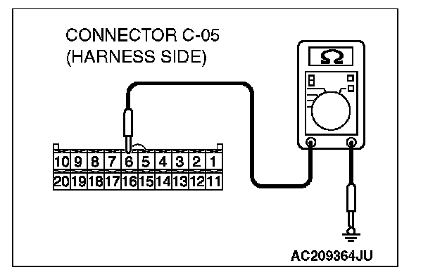 STEP 1. Check the multi-center display unit (middle grade type) ground circuit. Measure the resistance at the multi-center display unit (middle grade type) connector C-05.