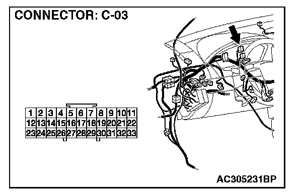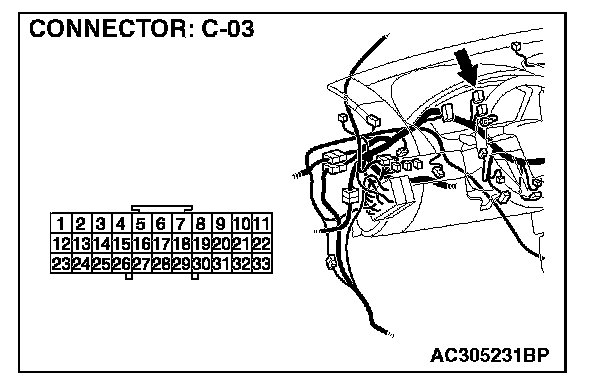 STEP 9. Check the wiring harness between C-05 (terminal 3) and ignition switch (ACC).