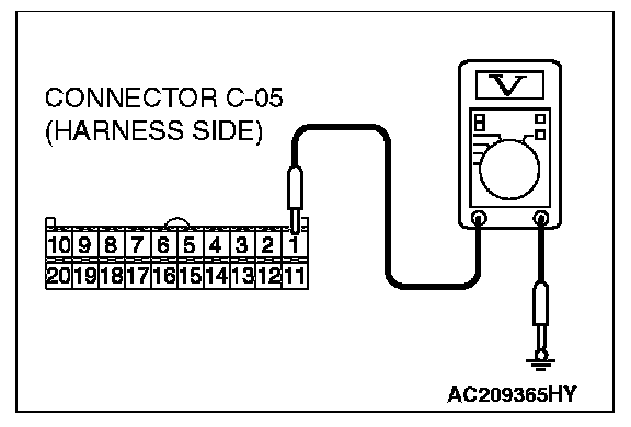 STEP 6. Check the wiring harness between C-05 (terminal 1) and battery.