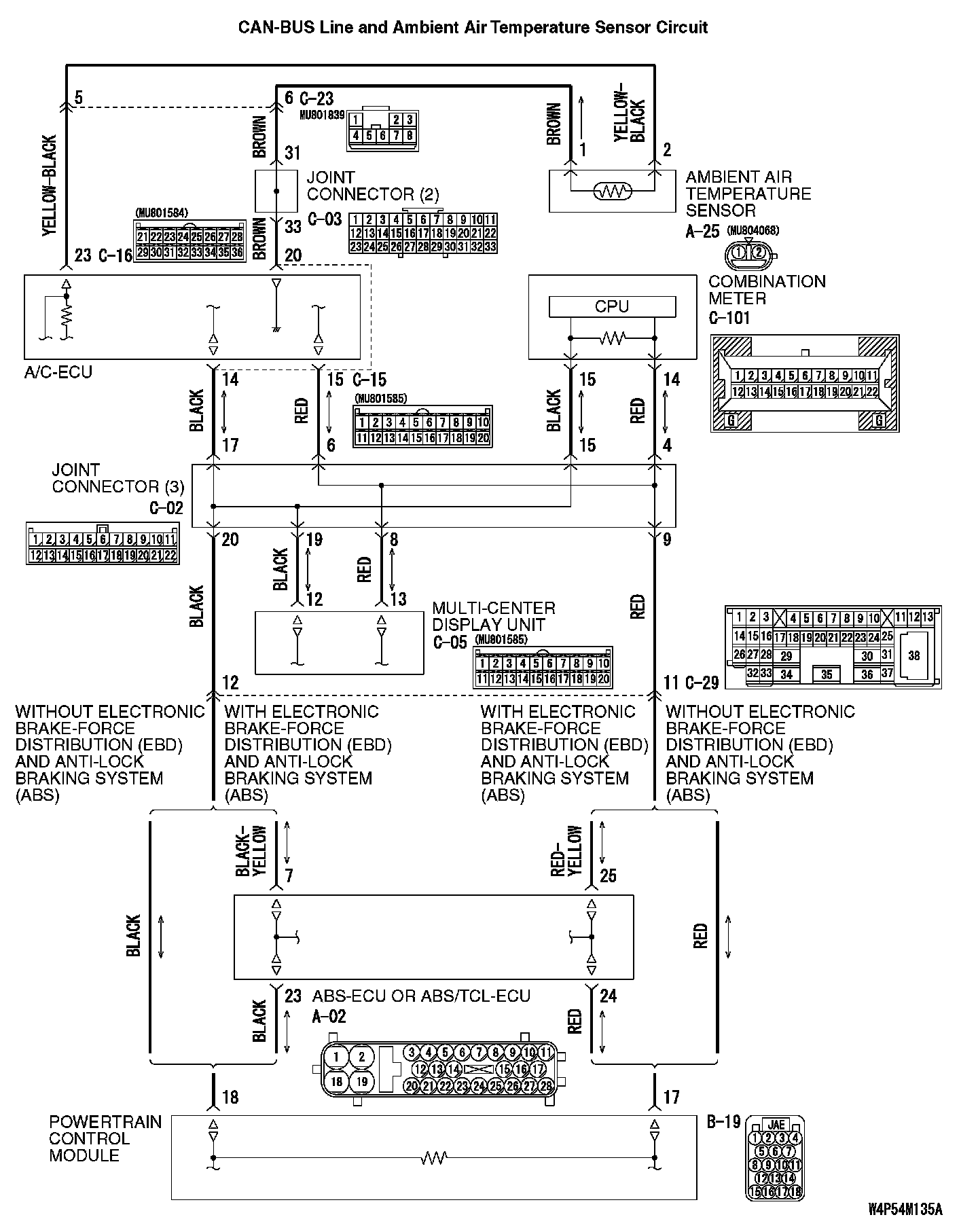 The Ambient Air Temperature Display Shows "COM ERROR" or "--deg °C (-- °F)." (Middle Grade Type)CAN-BUS Line And Ambient Air Temperature Sensor Circuit Part 1: