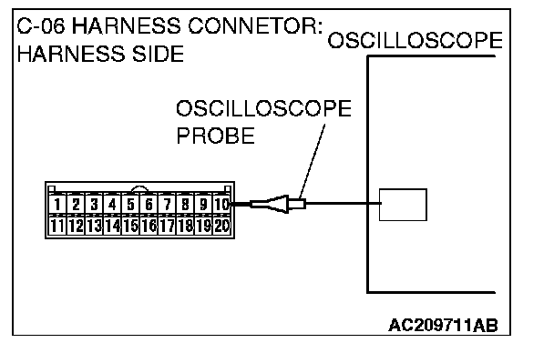 2. Connect the oscilloscope probe to terminal 10 of the multi-center display unit (middle grade type) connector by backprobing.