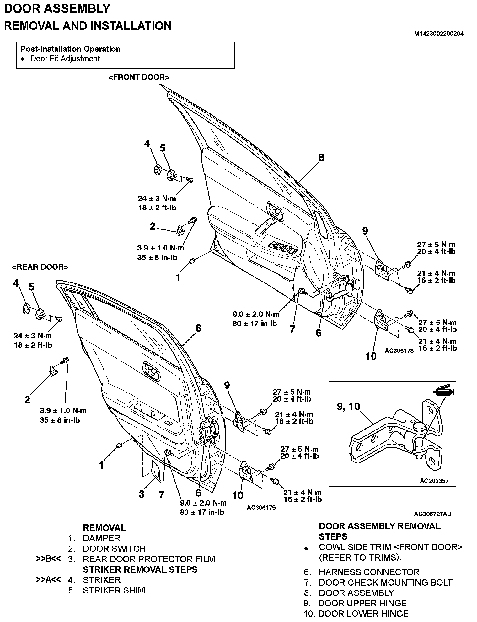 DOOR ASSEMBLYREMOVAL AND INSTALLATION