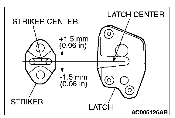 Align the center of the striker and latch within ± 1.5 mm (0.06 inch), and install.