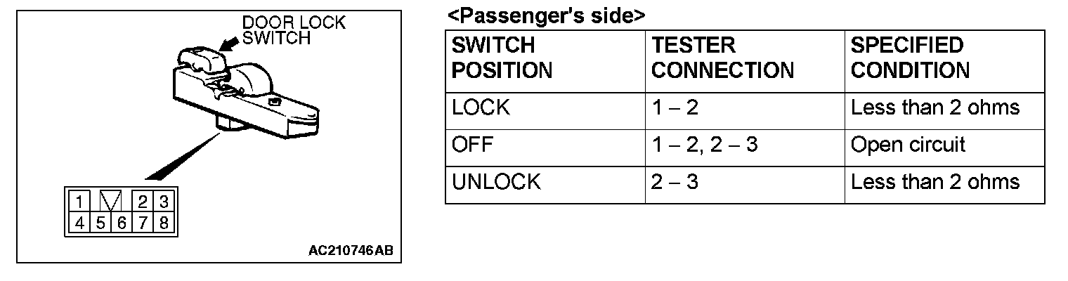 CENTRAL DOOR LOCK SWITCH CONTINUITY CHECK