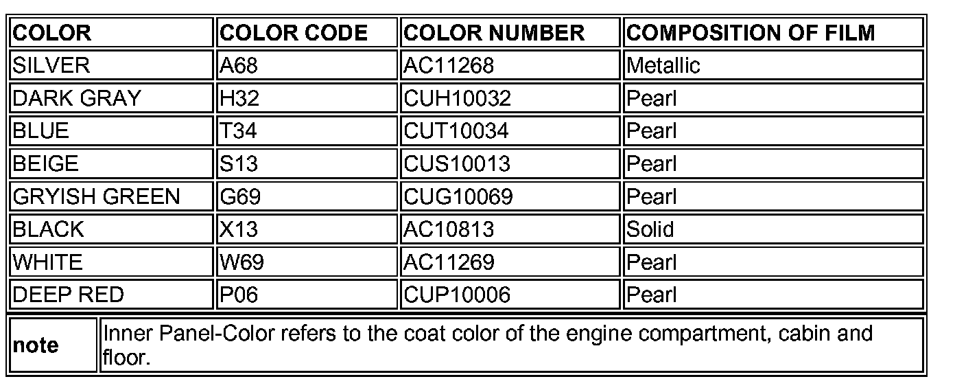 Check the vehicle's body color code, and then use this body color chart to determine the refinishing