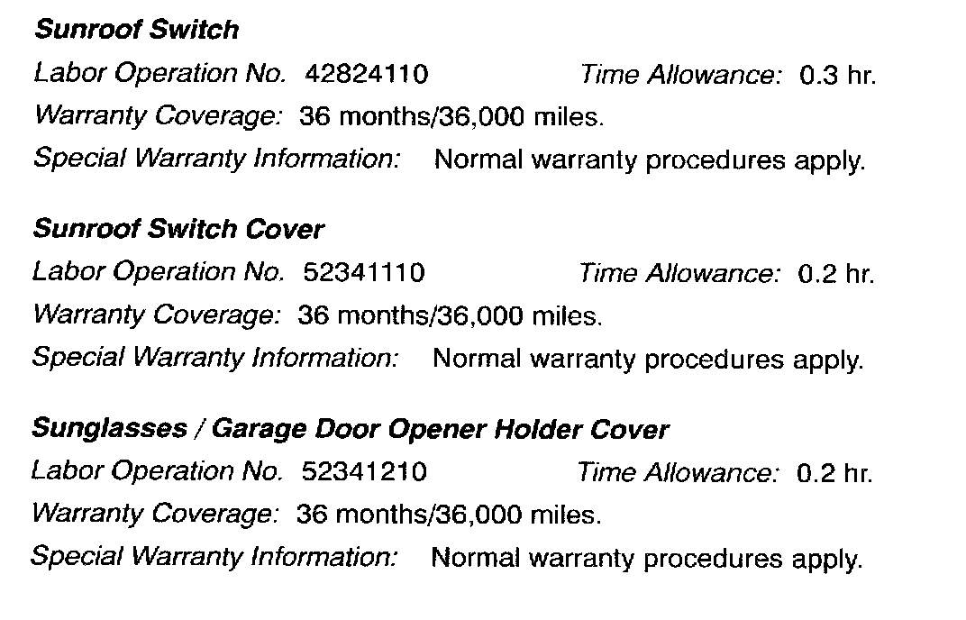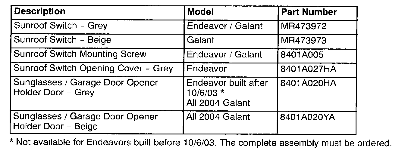 Service parts are now available for the overhead console components.