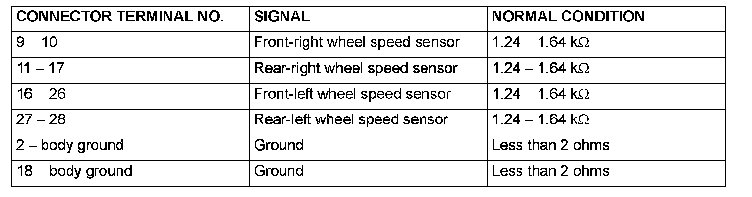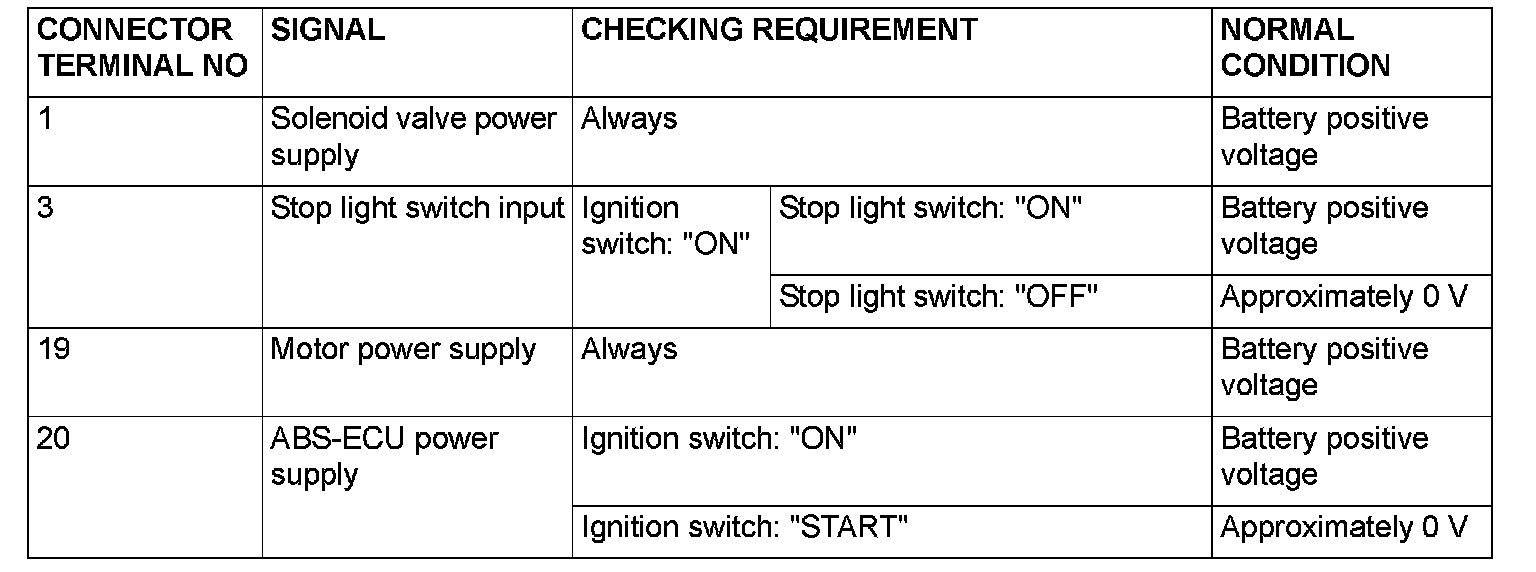 CHECK AT ABS-ECUTERMINAL VOLTAGE CHECK CHART