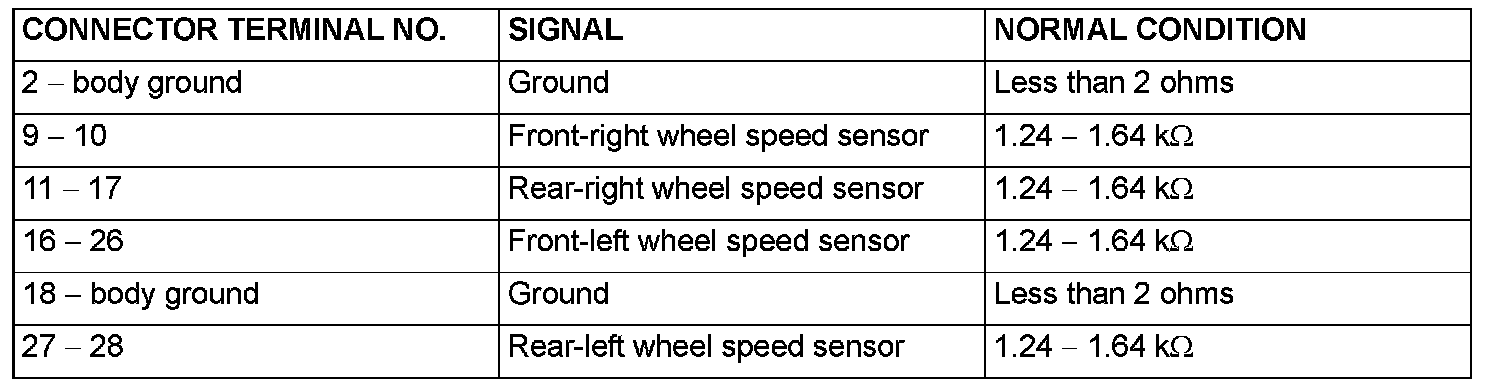 2. Check the resistance and continuity between the terminals indicated in the table given.