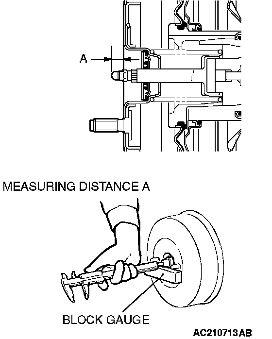 1. Use the vacuum pump to measure dimension "A" applying a negative pressure of 66.7 kPa (19.7 inch Hg) to the brake booster.
