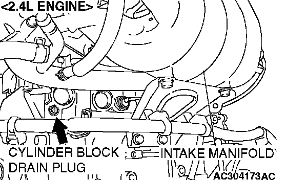 2. Drain the water in the water jacket by unplugging the drain plug of the cylinder block.